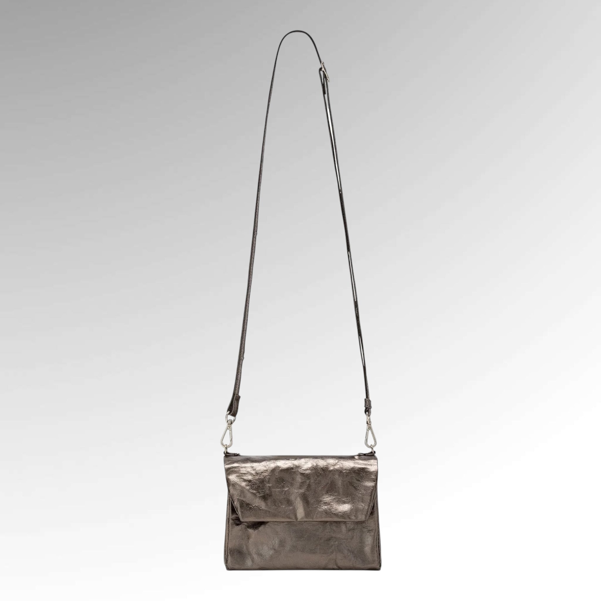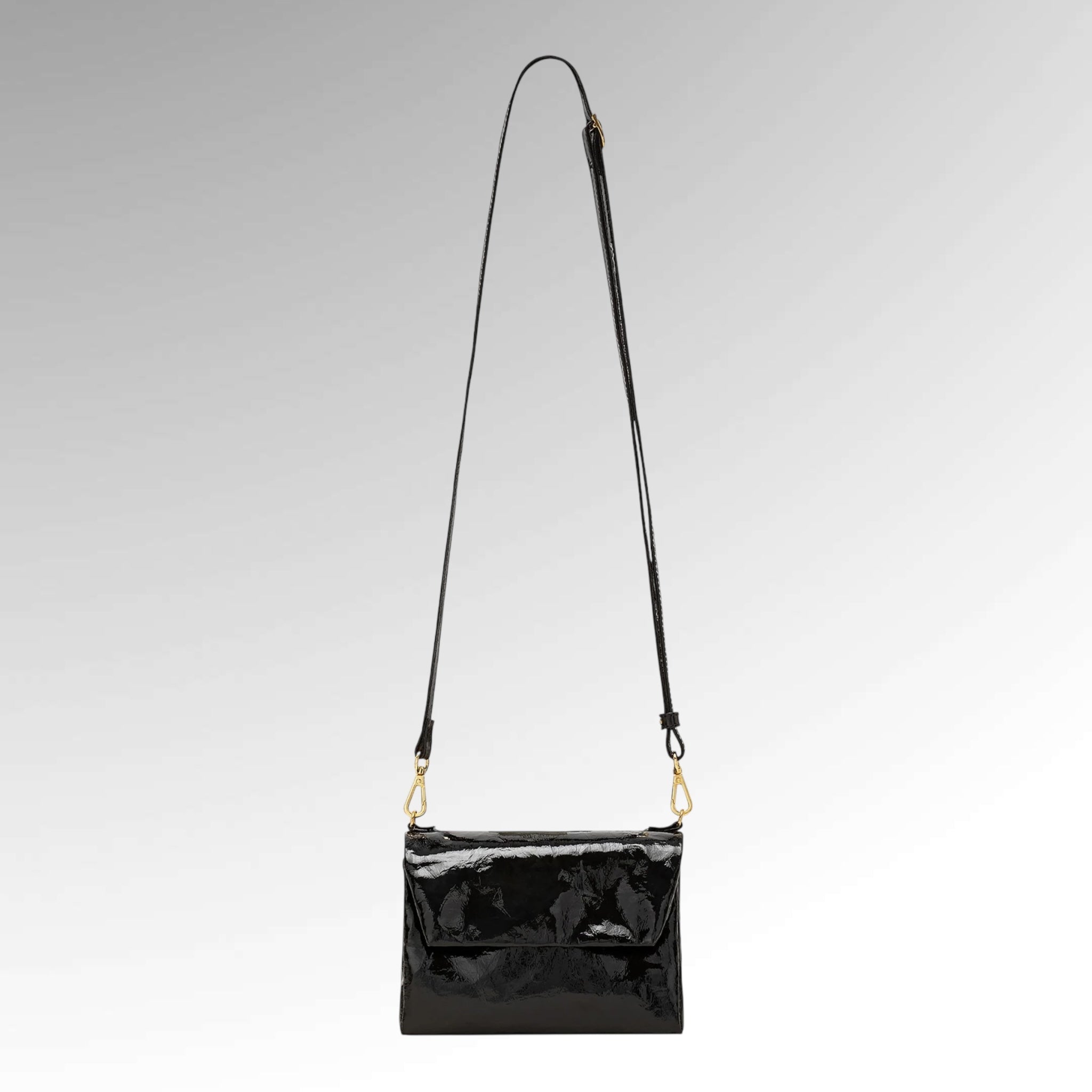 Crossbody meets compact handbag. Large enough to fit your phone, but small enough not to weigh you down. Remove the strap for an instant, more elevated evening look with a newly lined interior compartment.