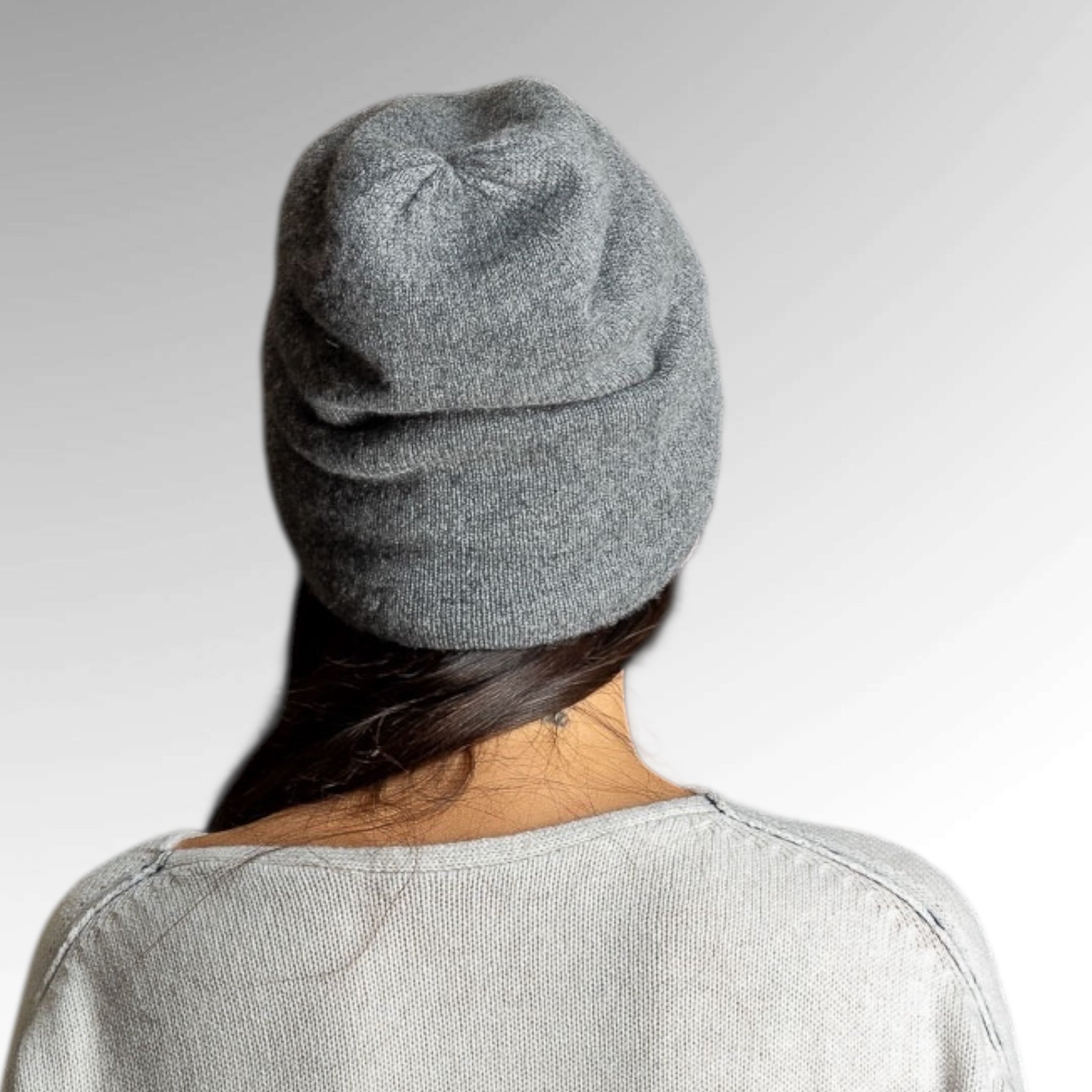 Stay warm and stylish with our double layer cashmere beanie featuring ultrachic slouchy drape. It can also be worn cuffed without the drape. Layer 2 beanies with different colors together for a fun pop-color effect with double warmth.