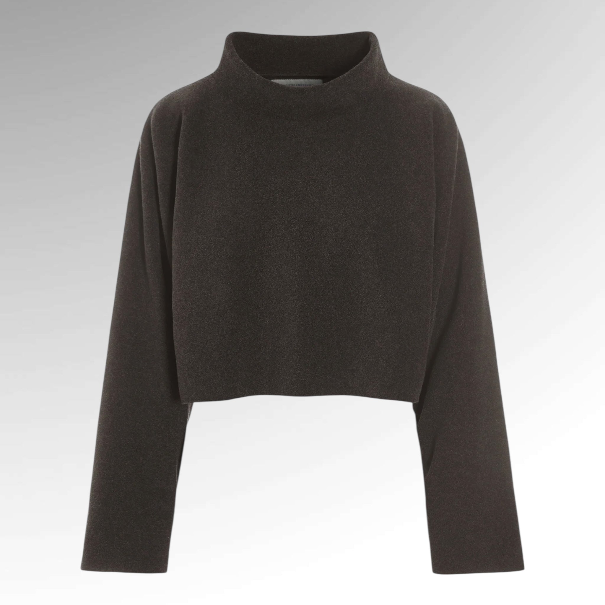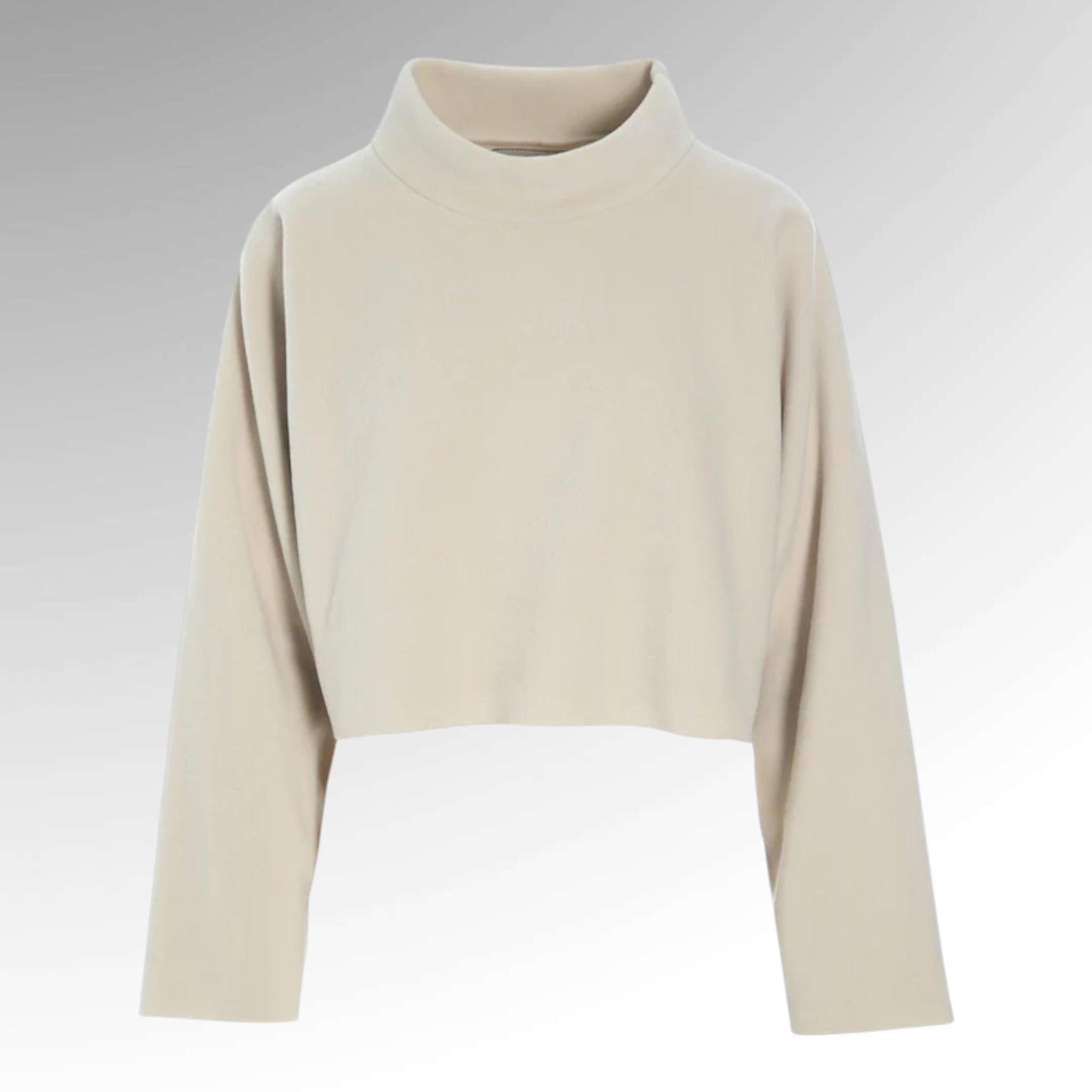 A cropped fleece top with a soft roll neck. This long-sleeved pullover features a cropped silhouette, perfect as a second layer over a top or dress, or paired with high-waisted trousers or skirts.