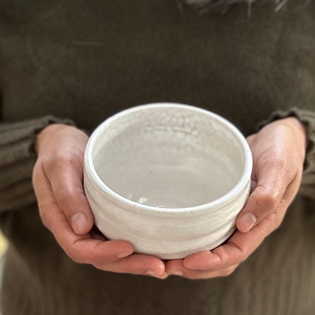 Stoneware with Glossy White Glaze / Crawl Detail Inside