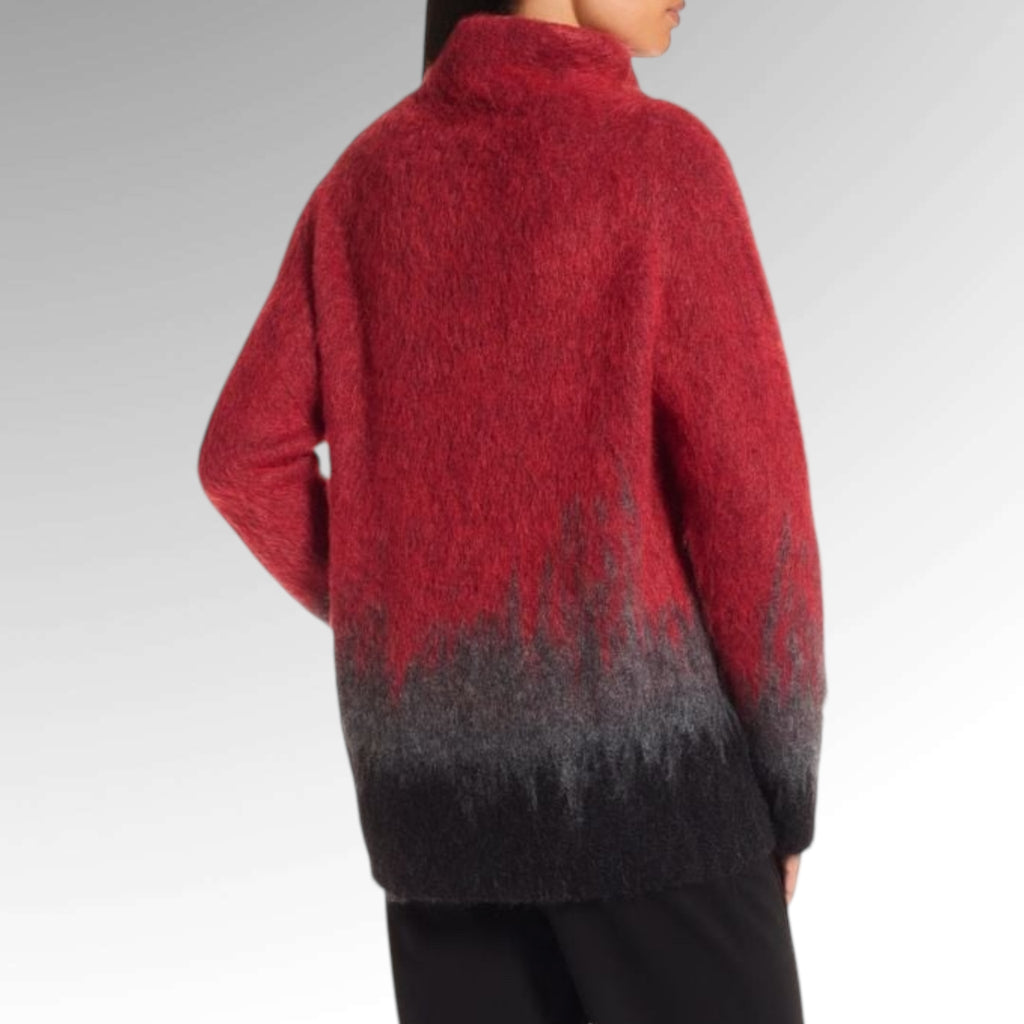 Transitioning across brushed mohair, a tricolor gradient highlights this sweater’s fine texture. The natural luster of the yarns enhances its soft, tactile surface, while the relaxed, Gender Neutral cut ensures endless comfort.