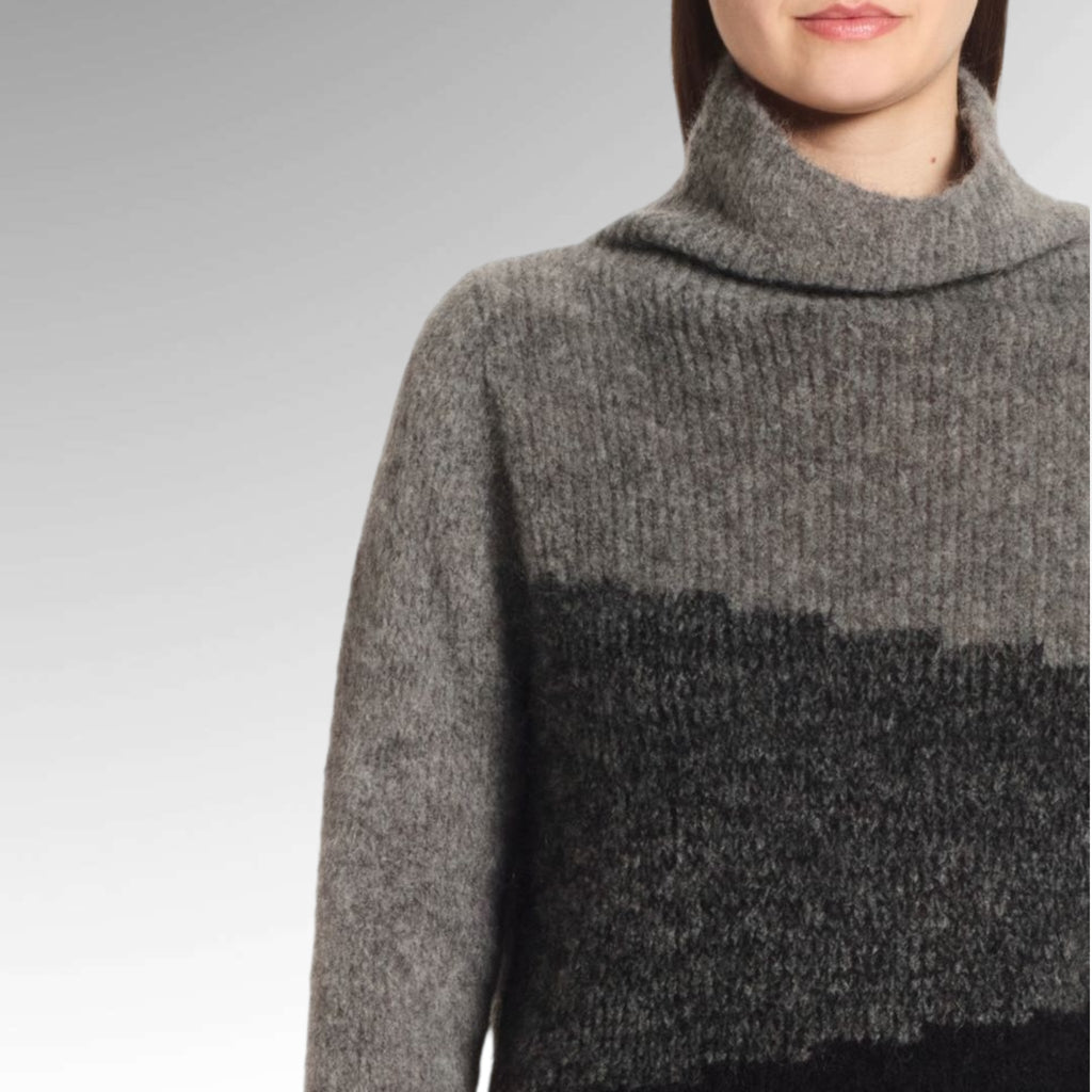 An extended silhouette and angular ombré design set this sweater apart. Made from a premium blend of superkid mohair, it provides lightweight warmth and a gentle stretch for ease of movement.