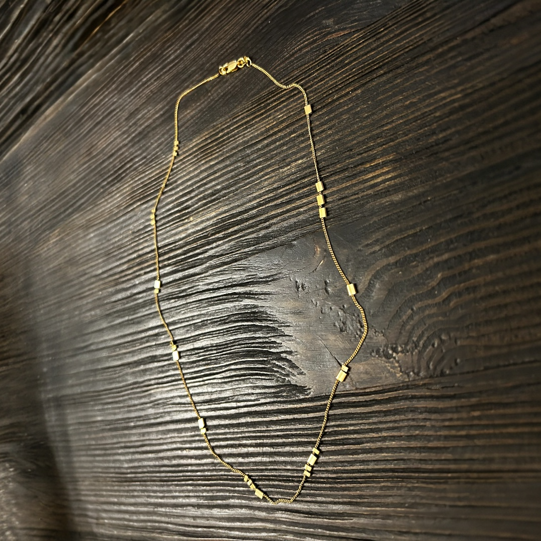 Thoughtfully designed, this is a necklace to wear forever. The line and dot ticks spell out Total Badass in Morse Code. It is subtle and elegant when worn solo, and also layers well with others. Pair it with an oversized crisp collared shirt.