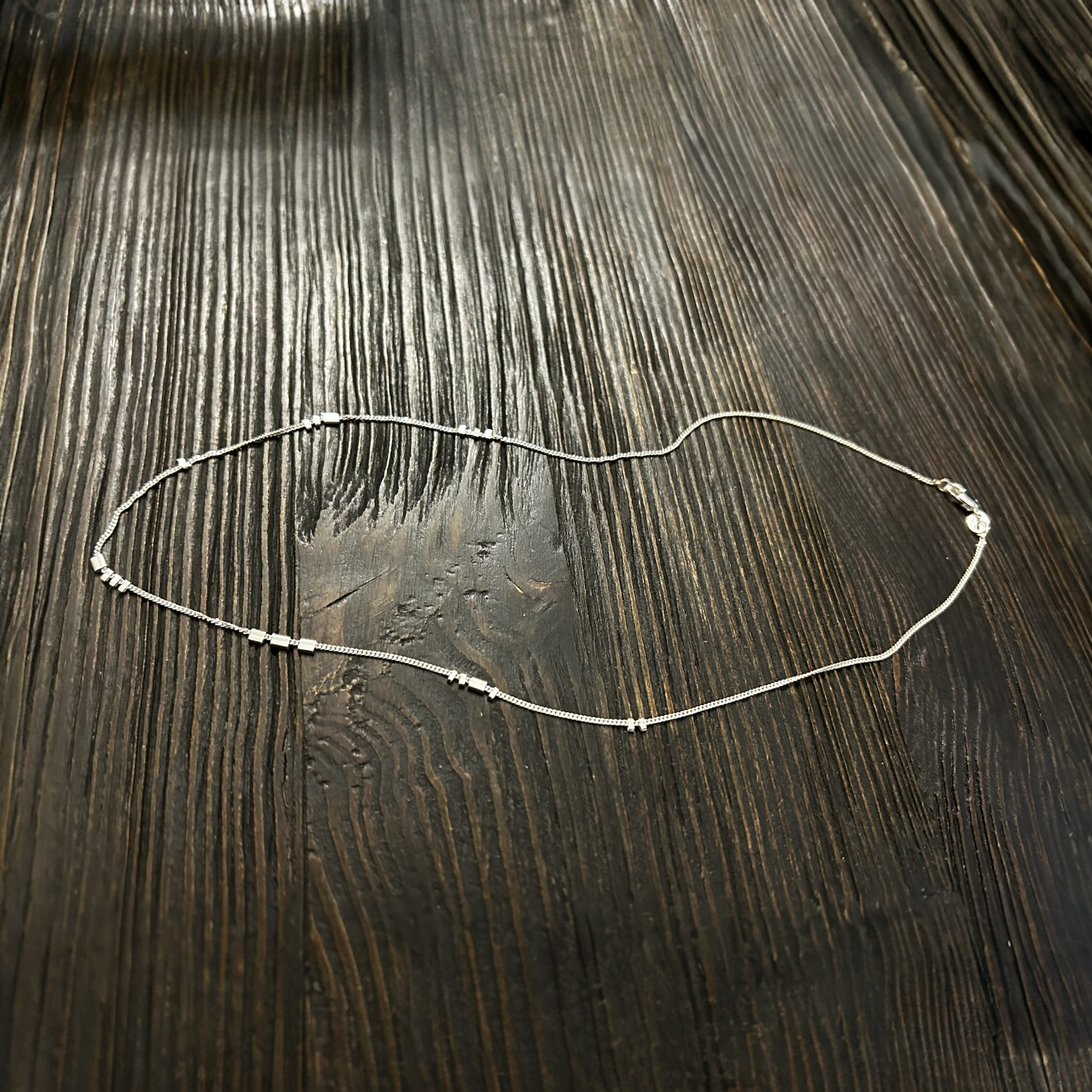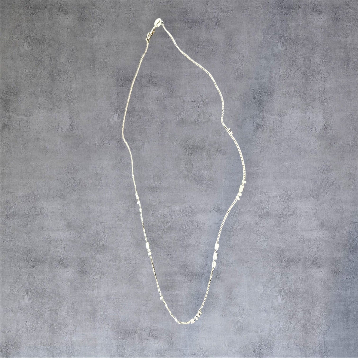 Thoughtfully designed, this is a necklace to wear forever. The line and dot ticks spell out in Morse Code: I Love Us. It is subtle and elegant when worn solo, and also layers well with others. Pair it with an oversized crisp collared shirt.